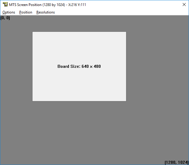 When you click on the "..." next to the Top/Left position, a Screen Position window will open to provide a visual tool for setting the opening screen position. By default, the current screen resolution is used - for targets with different screen resolutions or layouts, use the Options and Resolutions menus.