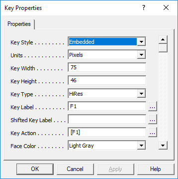 The Key Properties available depends on the project target, and the internal Mode (Level) of the Builder. Level 1 targets ANSI 2.10 KBFs, while Level 2 targets UNICODE 2.20 KBFs. This section is divided into 3 areas for addressing the different properties for each level, and the Key Actions available