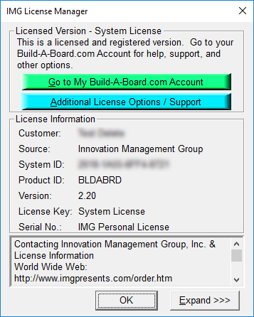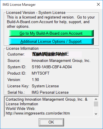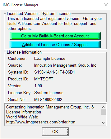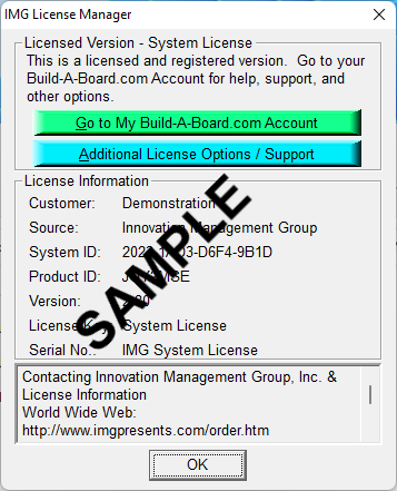 IMPORTANT NOTE: Custom layouts MUST be build from licensed Build-A-Board builders. If a layout is created on Build-A-Board that does not have a license, it will be tagged as "Evaluation", and will not operate as a licensed board, EVEN IF My-T-Soft is properly licensed. You must license Build-A-Board, and rebuild the custom layout (rebuild the KBF file).