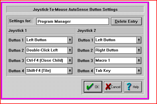 This is the Window Name that will trigger Joystick-To-Mouse to override the normal Button Settings with the Button Settings configured here. You may Edit / Change the name of the Window.
