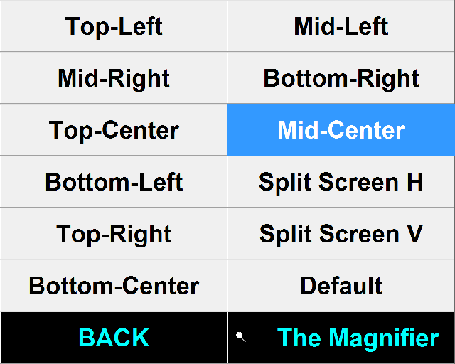 Set Position Menu The Set Position Menu allows you to select various positions & return to defaults. See Windowed Operation.