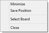 Note: The menu (when enabled) is typically accessed via a right-click (secondary button). Optionally the menu may be opened with a left press-and-hold, or when a board is moved partially off-screen. See MYTSOFT.INI settings for further details.