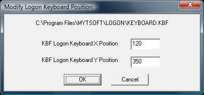 If you do not have Build-A-Board, and wish to change the opening position of the Small/Medium/Large Build-A-Board layouts, there is a basic utility called KBFLOGON.EXE in the LOGON folder. You can access this by clicking on Update Opening Position (Build-A-Board Layouts). By running this utility, you can change the opening X / Y position of the current selected Build-A-Board layout to match your screen orientation & resolution.
