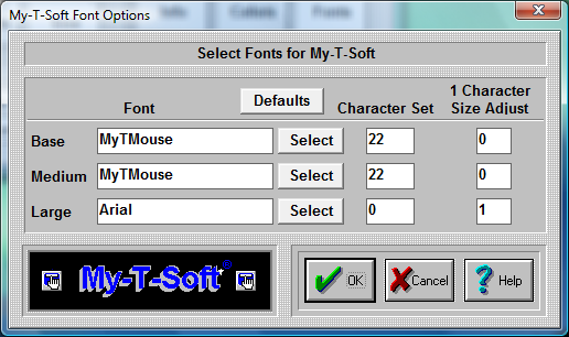 The Font capabilities of My-T-Soft TS are limited for a variety of reasons. These limited options have only been included as a specific solution for a small subset of customers. Use My-T-Soft TS Build-A-Board for more complete control over the appearance.