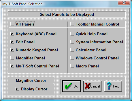 My-T-Soft TS lets you select which panels are open every time you start My-T-Soft TS.