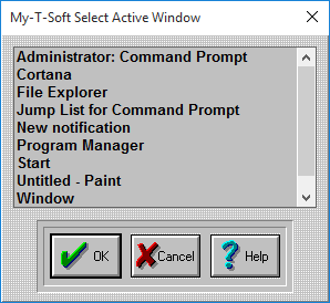 This list shows all of the current active windows running on your system. You may select the Window Name from the list. You may wish to modify the name to remove any open documents, or other information that may change. My-T-Soft must have an exact match to recognize the need to automatically open the Macro Panel.