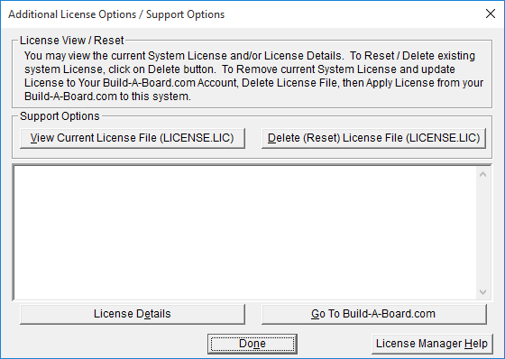 Note: The "Retrieve System License" uses a unique identifier to automatically license your system (which is only sent if the license is added or purchased after using the "Retrieve System License" button). If you try this on a different system, or after a system update or re-install (or after a change to this unique ID), the software will not license automatically. You will either need to add the system to your existing Build-A-Board.com account or purchase the appropriate license.
