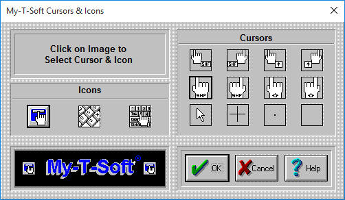 My-T-Soft enables you to select different Cursors and different Icons for use with My-T-Soft.