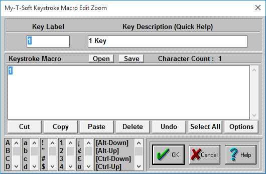 You may edit the Keystroke Macro directly in the Edit window. You may wish to refer to the Advanced User Notes for options & details regarding the keystroke macros.