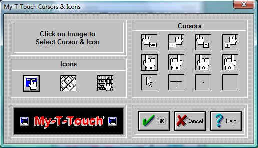 My-T-Touch enables you to select different Cursors and different Icons for use with My-T-Touch.
