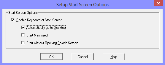 Check Enable Keyboard at Start Screen On to enable the automatic startup of OnScreen after the user logon and during the display of the Start Screen. With no other options selected, OnScreen will appear as it is currently configured.