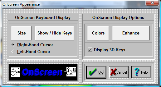 Select either Right-Hand Cursor or Left-Hand Cursor to alter which cursor is displayed over OnScreen, and used to select keys & buttons on OnScreen.