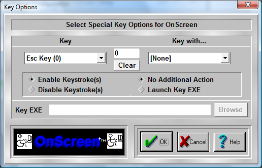 This defines the state of the particular key and its current modifier (Ctrl, Shift, Alt). If Enabled, then OnScreen will generate & send the keystroke. If Disabled, then the keystroke(s) will be removed and no action by OnScreen will occur when the particular keystroke(s) is/are initiated by the user. Note that this action is independent of the Launch Key EXE capability.
