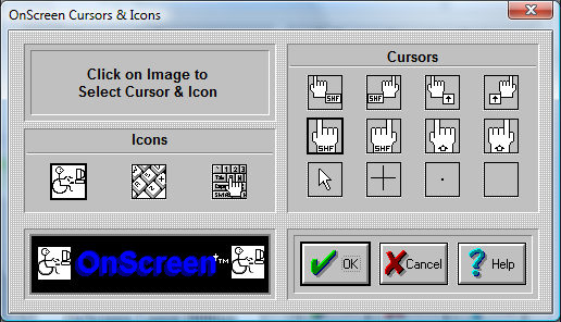 OnScreen enables you to select different Cursors and different Icons for use with OnScreen.