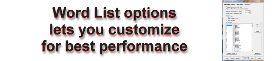 also import or create multiple custom dictionaries to suit your needs. WordComplete also sorts the words in the dictionary