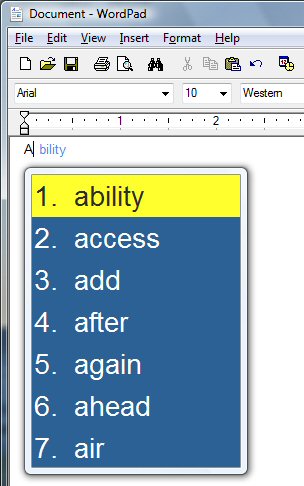 WordComplete adaptively predicts the word you are attempting to type and gives you a choice of options from it's dictionary.